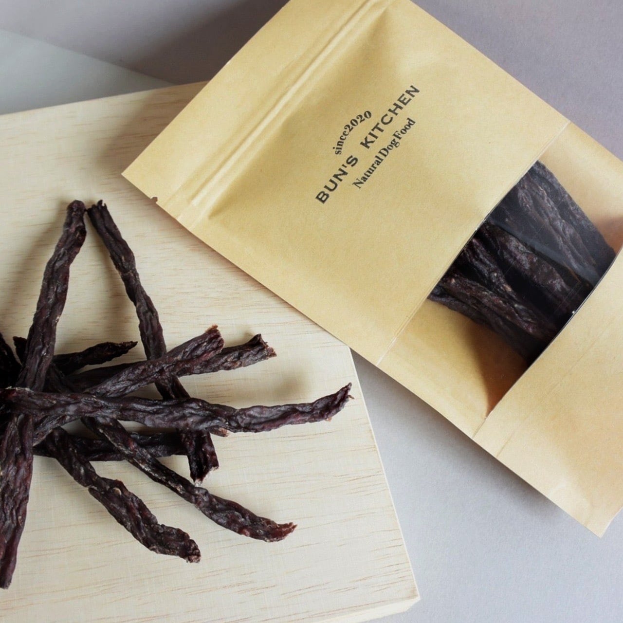スジが少なく食べやすいジャーキーです。手でポキッと折って与えられます!